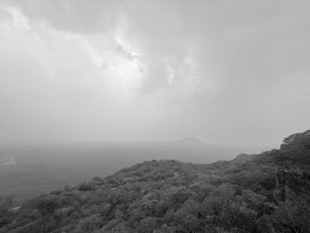 O simplemente estaba en su lugar a apenas un par de kilómetros de la plaza, pero no se lo podía ver. Fue un domingo triste, en blanco y negro. Especialmente en blanco, ese blanco del humo del incendio que la codicia inmisericorde quiere terminar con la belleza natural inconmensurable de nuestra diversidad, que está siendo destruida por querer volver todo lo que es de todas y todos en propiedad y plata para unos cuantos.